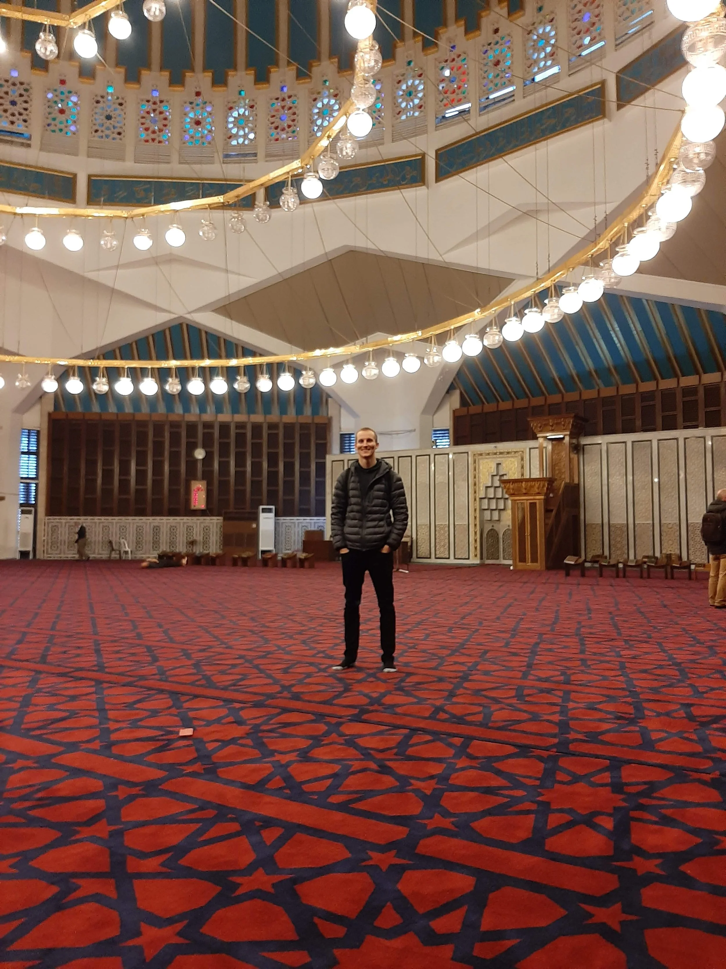 As a monolingual 25-year-old I moved to Athens, Greece to work with refugees. I could not have imagined the linguistic diversity of this work and how deeply that early experience would impact my life. Just because I was living in Greece I picked up quite a bit of Modern Greek. But, more than anything else, I started learning conversational Arabic from friends while teaching myself to read and write the Arabic script. During this time I was also introduced to two dialects of Kurdish which I have studied in the years since. Every facet of my Arabic improved when I left Greece and went to Jordan for an intensive language school in 2019 (picture at left: taking a break to visit King Abdullah I Mosque in Amman). In 2020, I got married to a native French speaker and so I started learning French which seemed much more familiar to me as an English speaker after years of struggling with Arabic.